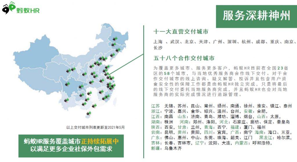 在這里推薦大家可以看一下螞蟻HR。螞蟻HR服務(wù)覆蓋城市正持續(xù)拓展中,以滿足更多企業(yè)社保外包需求為目標(biāo)而發(fā)展。目前,螞蟻HR共有十一大直營(yíng)交付城市,其中便包含杭州。