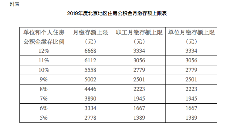 一、2019住房公積金年度北京住房公積金月繳存基數(shù)上限為27786元,具體繳存比例對(duì)應(yīng)月繳存額上限見(jiàn)附表。