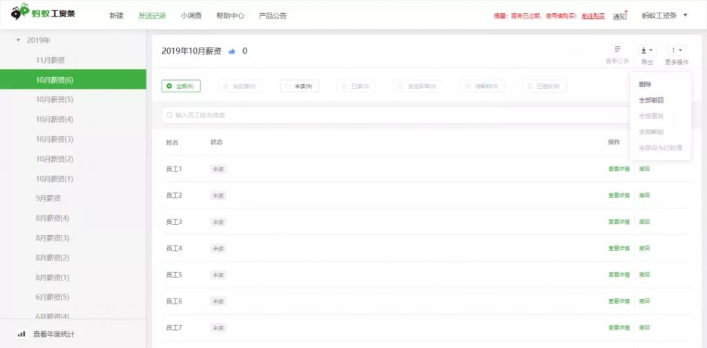 對于公司人事較多的,有工資條發(fā)放需求的企業(yè),可以使用電子工資條,像螞蟻HR這類電子工資條可以幫助企業(yè)很好的進行工資條的制作及發(fā)放,不用過多的操作,僅需要上傳工資表即可。
