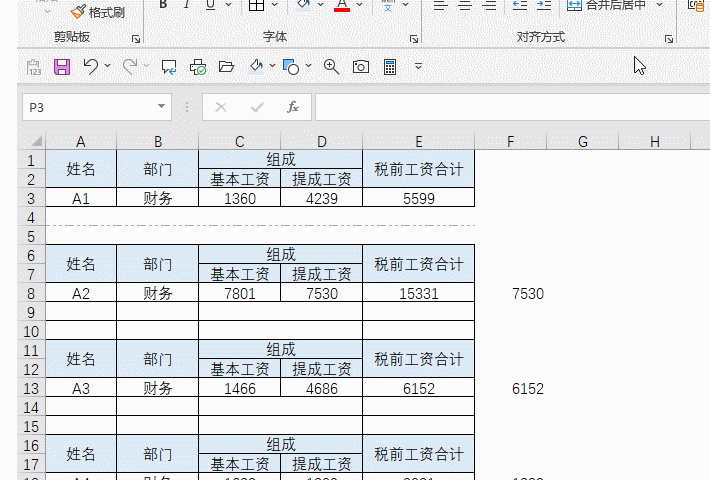 5. 工資條已經(jīng)做好,下面為每個人工資條加上邊框,方便裁剪。操作如下: