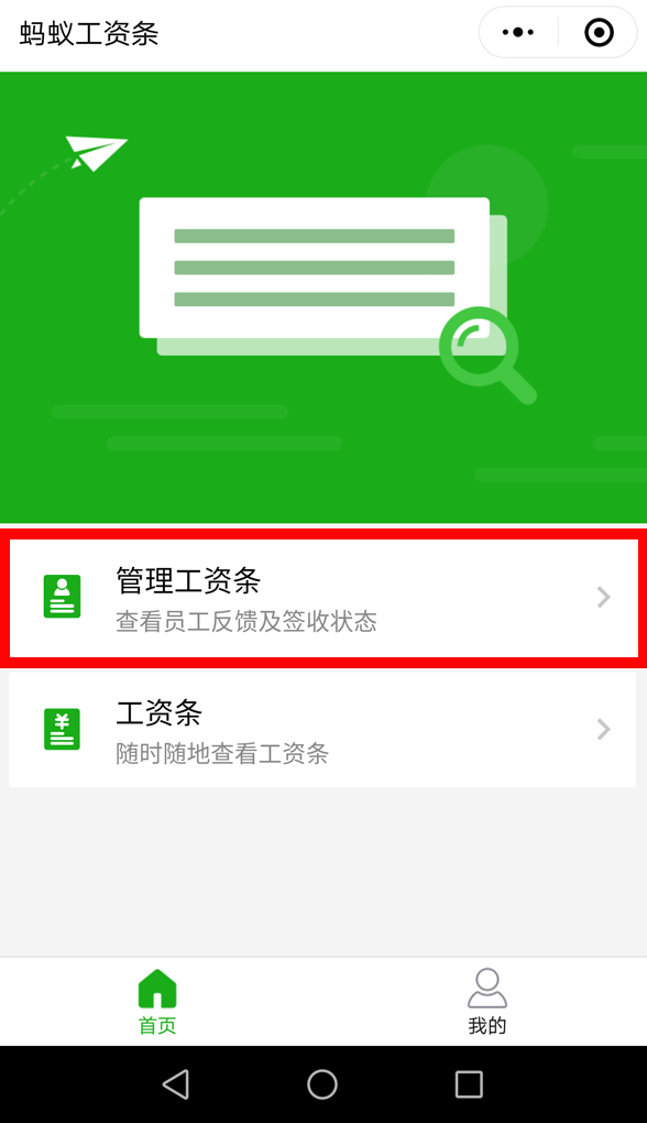 具體操作方法和前面講的工資條查看類似,只要登陸后點擊“管理工資條”即可。