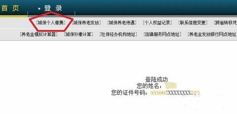 登陸成功之后,就可以看到如下這些反饋啦,再點擊“城保個人繳費”按鈕