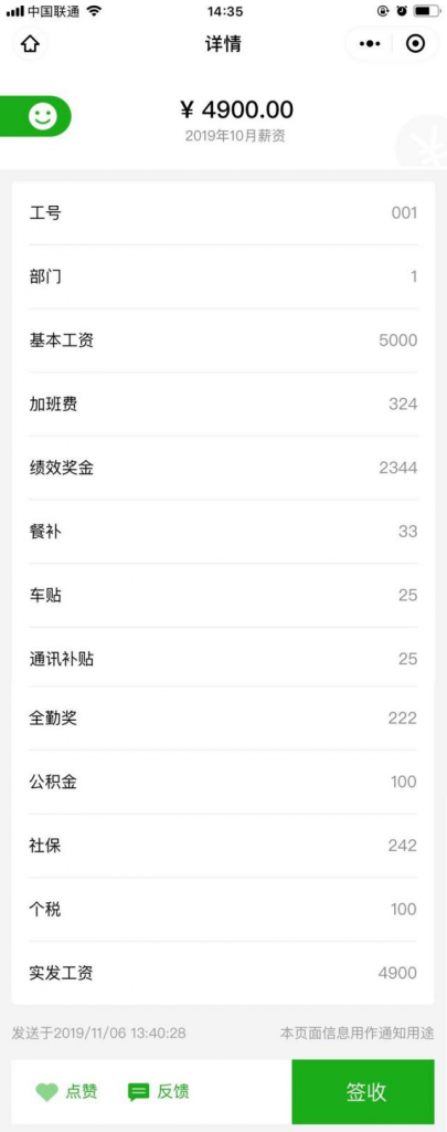 而且所有企業(yè)對自己的薪資,都有著保密措施與合同。但傳統(tǒng)的紙質(zhì)工資條,HR算薪、發(fā)放過程中,或員工收到工資條后隨手放到桌上、不下心丟失等,都很容易同事看見其他人的薪資數(shù)據(jù)。
