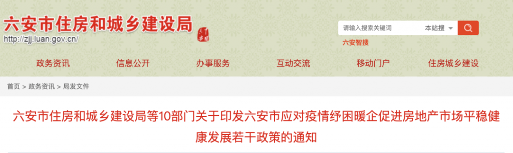 近期,安徽省六安市發(fā)布《六安市住房和城鄉(xiāng)建設(shè)局等10部門關(guān)于印發(fā)六安市應(yīng)對疫情紓困暖企促進(jìn)房地產(chǎn)市場平穩(wěn)健康發(fā)展若干政策的通知》。