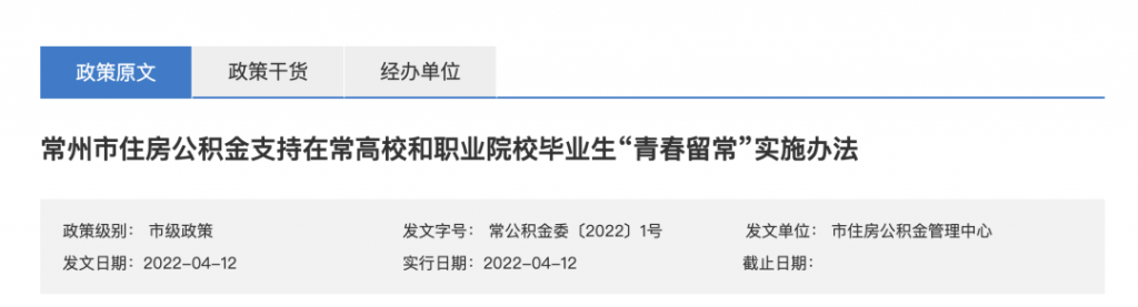 二、常州:對畢業(yè)生給予住房公積金繳存補(bǔ)貼