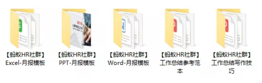 本次匯總的《HR最常用的工作月報模板》內含PPT、Excel、Word格式各一份,有圖表,有文字,圖表可自動生成,可根據公司實際數據修改即可直接套用;并且還有關于工作總結的寫作技巧和范本,大家可以進行參考。