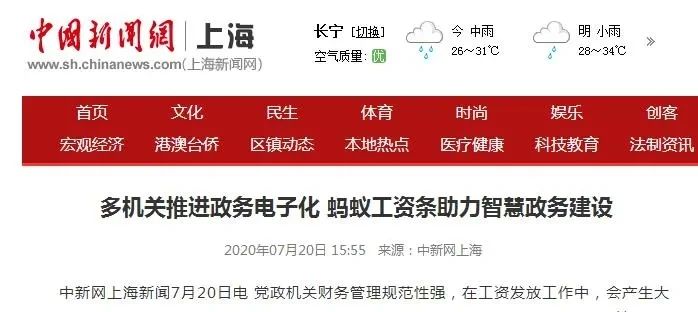 上海市青浦區(qū),二十多個單位啟用螞蟻工資條,還引來了人民網(wǎng)、中新網(wǎng)等媒體報道關(guān)注;