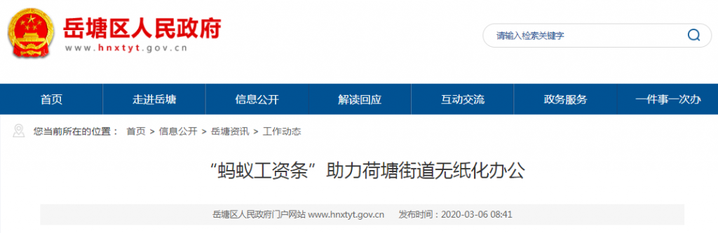 湖南湘潭,岳塘區(qū)政府官網(wǎng)發(fā)文介紹螞蟻工資條。