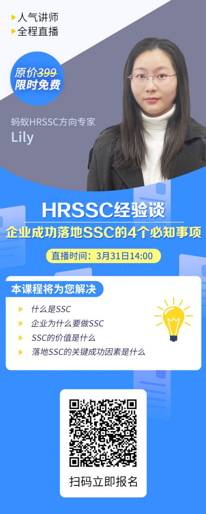本期課程,螞蟻HRSSC方向專家Lily將為您深入講解什么是SSC,以及企業(yè)如何將SSC落地。