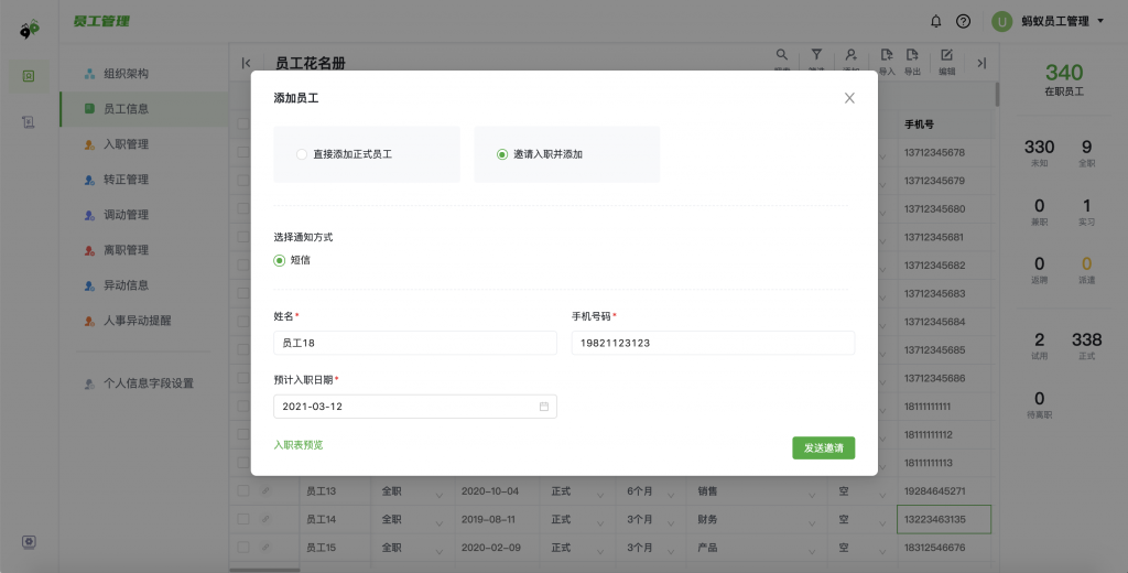 √ 邀請入職一鍵發(fā)送 高效完成入職登記