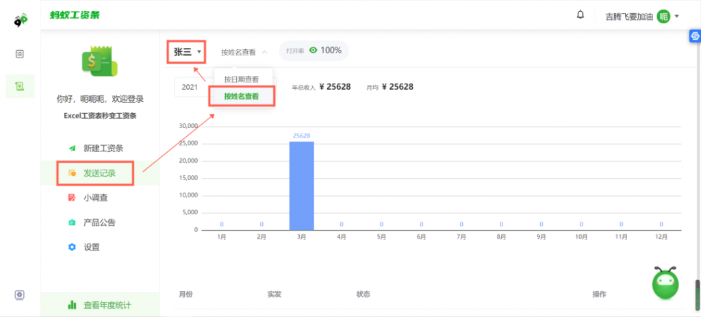 經常有管理員來向螞蟻工資條客服咨詢,希望能篩選單個員工姓名來統(tǒng)計每月的薪資情況,現(xiàn)在可以實現(xiàn)啦~