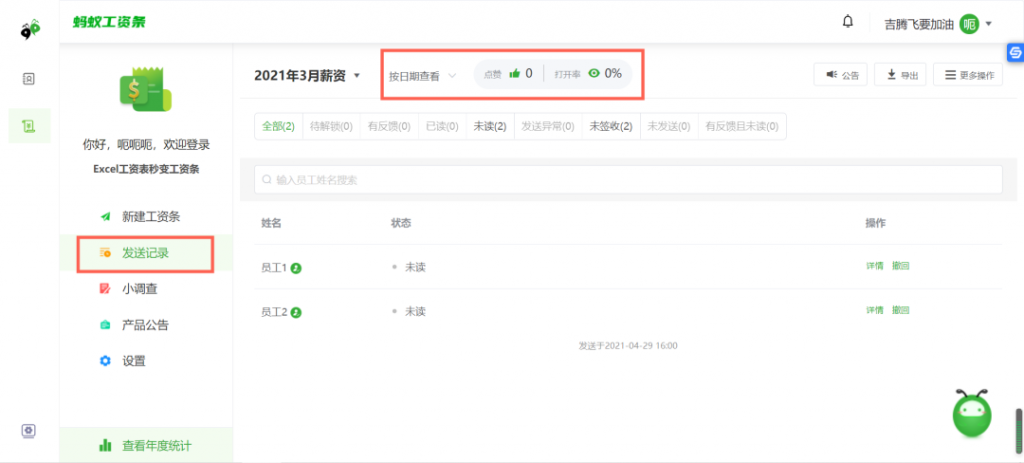 工資表上傳后,系統(tǒng)將自動匹配員工聯(lián)系方式。
